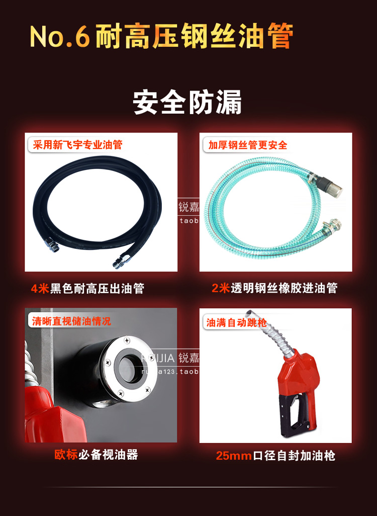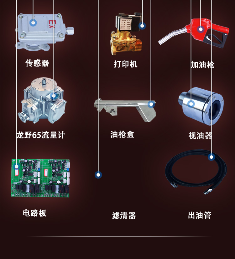 | 標準配置: | 六分出油管6米(黑色橡膠鋼絲管),1寸進油管2米(透明鋼絲膠管),鑰匙一把,六分加油槍一把(油滿自動跳槍),標配主機(采用龍野65活塞式流量計)。 |